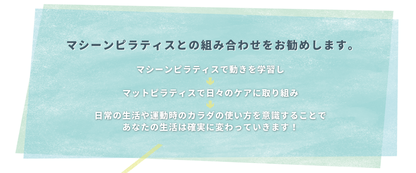 ピラティスがご自身のカラダと向き合うきっかけとなれば幸いです。